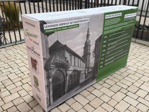 Stromkasten vor dem Leininger Oberhof ist unter der Haube